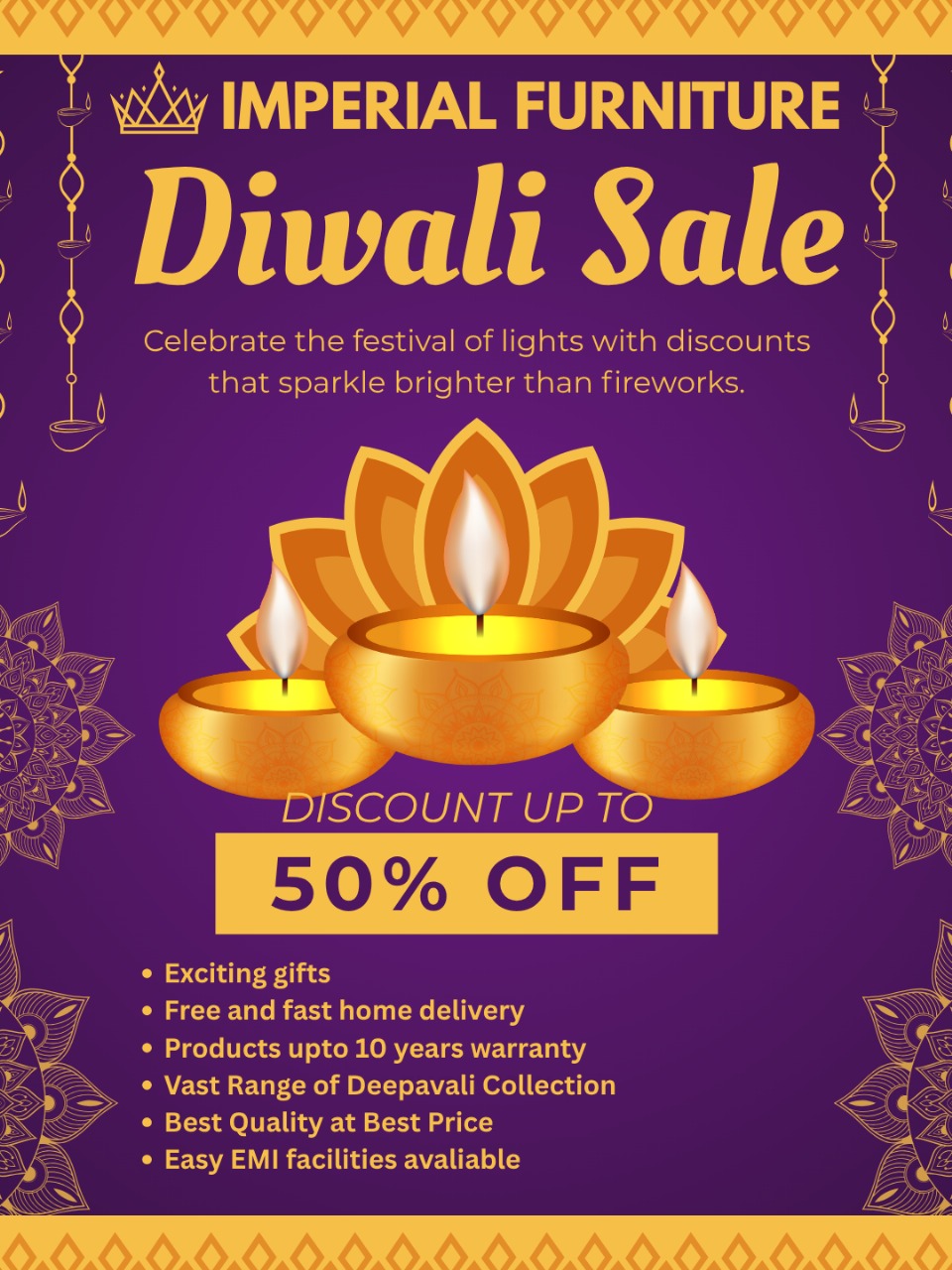 ಇಂಪಿರೀಯಲ್ ಫರ್ನಿಚರ್ಸ್ ನಲ್ಲಿ ದೀಪಾವಳಿ ಹಬ್ಬಕ್ಕೆ ಗ್ರಾಹಕರಿಗಾಗಿ ವಿಶೇಷ ಆಫರ್ : ಮನದಿಚ್ಚೆಯ ಗೃಹಪಯೋಗಿ ಉಪಕರಣಗಳ ಮೇಲೆ ವಿಶೇಷ ರಿಯಾಯಿತಿ – ಕಹಳೆ ನ್ಯೂಸ್