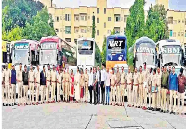ವಿವಿಧ ಪ್ರದೇಶಗಳಿಂದ ಬಂದ ಖಾಸಗಿ ಬಸ್ಗಳನ್ನು ಪರಿಶೀಲಿಸಲಾಯಿತು. ನಿಯಮಗಳನ್ನು ಪಾಲಿಸದ 30 ಬಸ್ಗಳನ್ನು ವಶಪಡಿಸಿಕೊಳ್ಳಲಾಯಿತು. ಹೆಚ್ಚುವರಿ ಸಾರಿಗೆ ಆಯುಕ್ತ ಓಂಕಾರೇಶ್ವರಿ ನೇತೃತ್ವದಲ್ಲಿ ಈ ಶೋಧ ನಡೆಸಲಾಯಿತು.