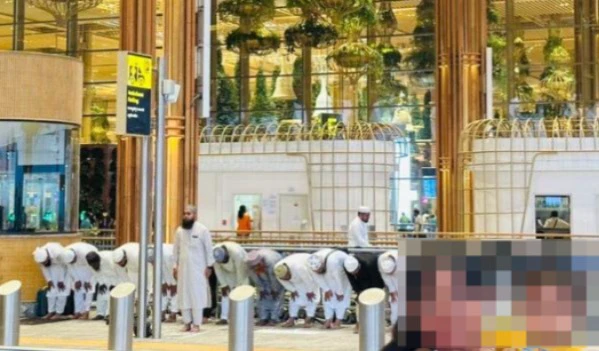 ಏರ್ಪೋರ್ಟ್ ಗೆ ಮೆಕ್ಕಾಗೆ ತೆರಳುತ್ತಿದ್ದವರನ್ನು ಬಿಳ್ಕೊಡಲು ಸುಮಾರು ಹತ್ತಕ್ಕೂ ಹೆಚ್ಚು ಮಂದಿ ಆಗಮಿಸಿದ್ದರು. ಅವರನ್ನು ಕಳುಹಿಸಿ ವಾಪಸ್ ಬರುವ ವೇಳೆ ಟರ್ಮಿನಲ್ 2 ರಲ್ಲಿ ಸಾರ್ವಜನಿಕವಾಗಿ ನಮಾಜ್ ಮಾಡಿದ್ದಾರೆ.
