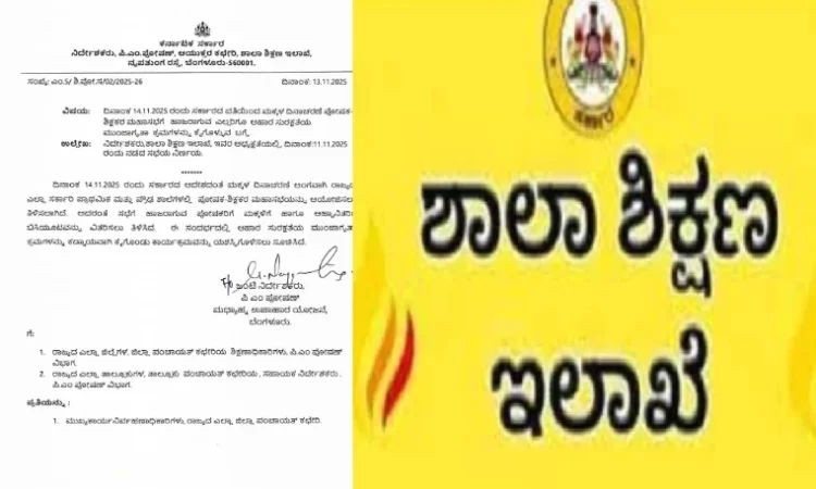 ದಿನಾಂಕ 14.11.2025 ರಂದು ಸರ್ಕಾರದ ಆದೇಶದಂತೆ ಮಕ್ಕಳ ದಿನಾಚರಣೆ ಅಂಗವಾಗಿ ರಾಜ್ಯದ ಎಲ್ಲಾ ಸರ್ಕಾರಿ ಪ್ರಾಥಮಿಕ ಮತ್ತು ಪ್ರೌಢ ಶಾಲೆಗಳಲ್ಲಿ ಪೋಷಕ-ಶಿಕ್ಷಕರ ಮಹಾಸಭೆಯನ್ನು ಆಯೋಜಿಸಲು ತಿಳಿಸಲಾಗಿದೆ.