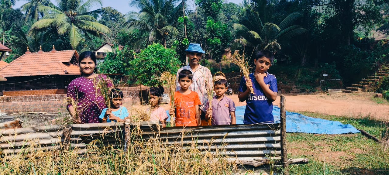 ಅನ್ನಪೂರ್ಣೇಶ್ವರಿಯ ನೆಲೆ ಎಲ್ಲಿ ಇರುತ್ತದೋ ಆ ಜಾಗ ಬರಡು ಬೂಮಿ ಆಗಿದ್ದರೂ, ಹಸಿರಿಂದ ಕಂಗೊಳಿಸುವಂತೆ ಮಾಡುವ ಶಕ್ತಿ ಆ ಅಮ್ಮನಿಗೆ ಇದೆ ಎನ್ನುವುದಕ್ಕೆ ಮಕ್ಕಳ ಮೂಲಕ ಸಾಕ್ಷಿ ನೀಡಿದ್ದಾಳೆ ತಾಯಿ. ಈ ದಿನ ಮಕ್ಕಳು ಸುತ್ತಮುತ್ತಲಿನ , ಹಿರಿಯರು,ಮಕ್ಕಳ ಜೊತೆ ಸೇರಿ ಪೈರನ್ನು ಕೊಯ್ದು ಸಂಭ್ರಮ ಪಟ್ಟರು . ಮಕ್ಕಳ ಪ್ರತೀ ಚಟುವಟಿಕೆಯಲ್ಲಿ ಮನೆಯವರ,ಪ್ರೋತ್ಸಹವೂ ಇತ್ತು. ಮುಂದಿನ ಬಾರಿಗೆ ಬೀಜಕ್ಕಾಗಿ ಈ ಭತ್ತವನ್ನು ಸಂಗ್ರಹಿಸಿಟ್ಟು ಇದಕ್ಕಿಂತಲೂ ಹೆಚ್ಚಿನ ಪ್ರಮಾಣದ ಬೆಳೆ ತೆಗೆಯುವ ಯೋಜನೆಯಲ್ಲಿದ್ದಾರೆ ಈ ಮಕ್ಕಳು. ಇವರಲ್ಲಿ ಧನ್ವಿನ್ ಶ್ರೀ ಗುರುದೇವ ಶಿಕ್ಷಣ ಸಂಸ್ಥೆ ಒಡಿಯೂರು, ವೇದಾಂತ್ ಮತ್ತು ಹಾರ್ಧಿಕ್ ಶ್ರೀ ಸರಸ್ವತಿ ವಿದ್ಯಾಲಯ ಕನ್ಯಾನ, ಹಾಗೂ ಹರ್ಷಿಕಾ ಸೈ0ಟ್ ರೀಟಾ ಶಿಕ್ಷಣ ಸಂಸ್ಥೆ ವಿಟ್ಲ ಇಲ್ಲಿನ ವಿದ್ಯಾರ್ಥಿಗಳಾಗಿದ್ದಾರೆ.