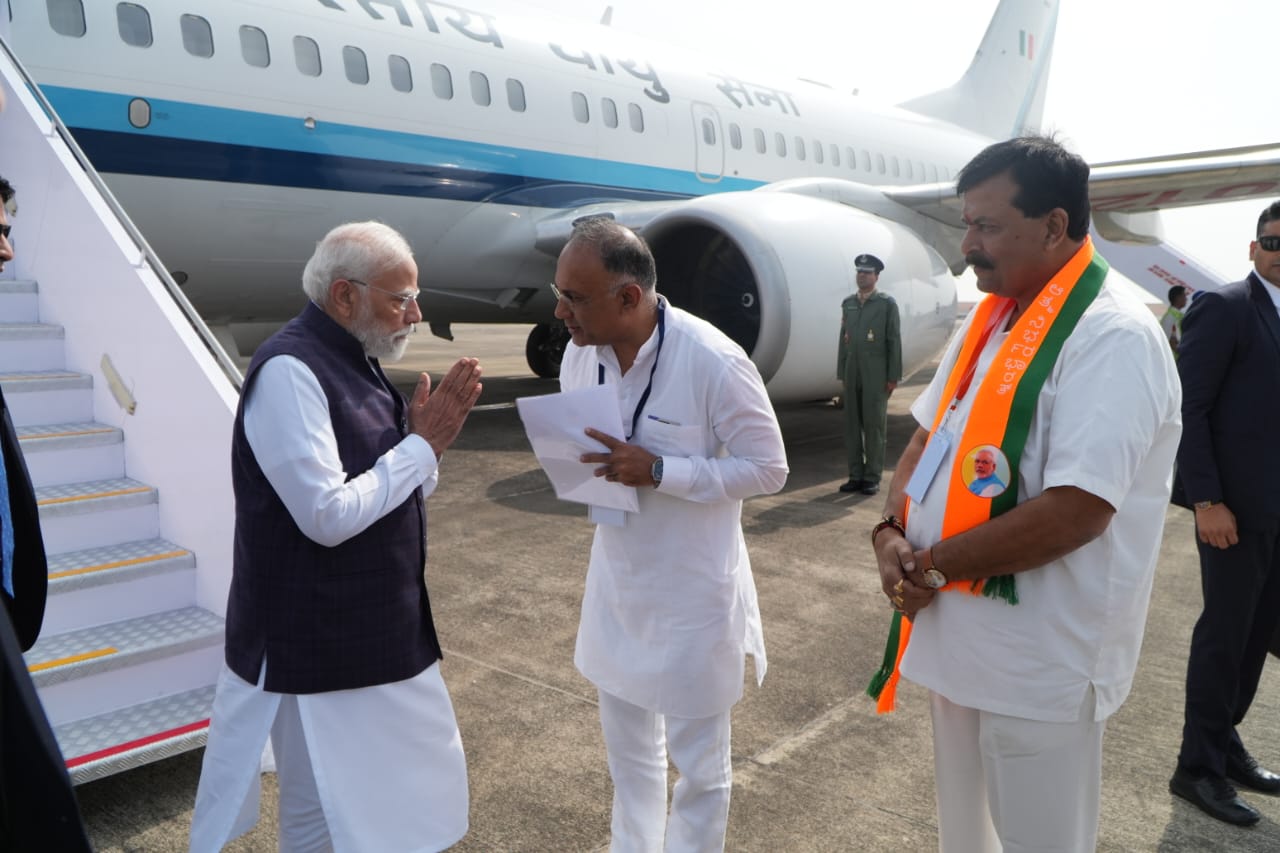 ಬೆಳಿಗ್ಗೆ 10.25ಕ್ಕೆ ಭಾರತೀಯ ವಾಯುಪಡೆ ವಿಮಾನದಲ್ಲಿ ಆಗಮಿಸಿದ ಪ್ರಧಾನಮಂತ್ರಿಗಳನ್ನು, ರಾಜ್ಯ ಸರಕಾರದ ಪರವಾಗಿ ಆರೋಗ್ಯ ಮತ್ತು ಜಿಲ್ಲಾ ಉಸ್ತುವಾರಿ ಸಚಿವ ದಿನೇಶ್ ಗುಂಡೂರಾವ್, ಸ್ವಾಗತಿಸಿದರು.