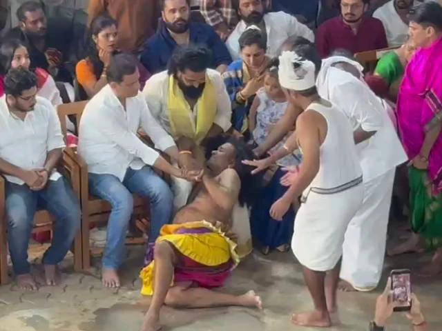 ಮಂಗಳೂರು: ಕಾಂತಾರ ನಟ ರಿಷಬ್ ಶೆಟ್ಟಿ ಇತ್ತೀಚೆಗೆ ನಡೆಸಿದ ಹರಕೆಯ ನೇಮೋತ್ಸವ ಇದೀಗ ವಿವಾದಕ್ಕೆ ಕಾರಣವಾಗಿದ್ದು, ನೇಮೋತ್ಸಲದ ಸಂದರ್ಭ ದೈವ ನರ್ತಕರು ರಿಷಬ್ ಶೆಟ್ಟಿ ಮಡಿಲಲ್ಲಿ ಮಲಗಿದ್ದಕ್ಕೆ ಅಪಸ್ವರ ಕೇಳಿ ಬಂದಿದ್ದು, ಸಾಮಾಜಿಕ ಜಾಲತಾಣದಲ್ಲಿ ಭಾರೀ ಚರ್ಚೆಗೆ ಕಾರಣವಾಗಿದೆ.
