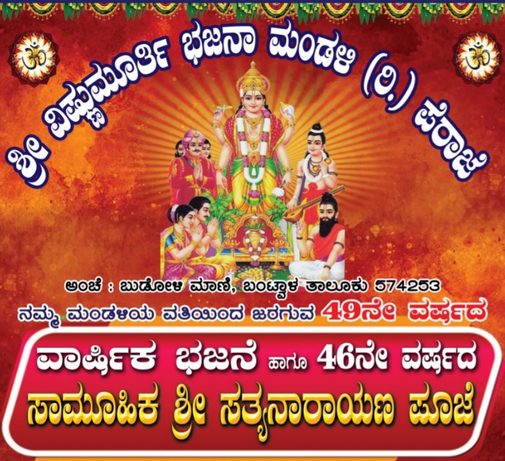 ಡಿ.28ರಂದು ಶ್ರೀ ವಿಷ್ಣುಮೂರ್ತಿ ಭಜನಾ ಮಂಡಳಿ ಪೆರಾಜೆ ಯಲ್ಲಿ 49ನೇ ವರ್ಷದ ವಾರ್ಷಿಕ ಭಜನೆ ಹಾಗೂ 46ನೇ ವರ್ಷದ ಶ್ರೀ ಸತ್ಯನಾರಾಯಣ ಪೂಜೆ -ಕಹಳೆ ನ್ಯೂಸ್