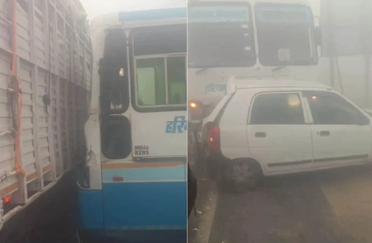 ಹರಿಯಾಣ : ಇಂದು ಮುಂಜಾನೆ ಹರಿಯಾಣದಲ್ಲಿ ಎರಡು ಪ್ರತ್ಯೇಕ ಘಟನೆಗಳಲ್ಲಿ ಬಸ್ಗಳು, ಟ್ರಕ್ಗಳು ಮತ್ತು ಕಾರುಗಳು ಸೇರಿದಂತೆ ಹಲವಾರು ವಾಹನಗಳು ಡಿಕ್ಕಿ ಹೊಡೆದಿದ್ದು, ಭಾರೀ ವಾಹನಗಳು ಜಖಂಗೊಂಡಿದ್ದು, ಕಳೆದ ಕೆಲವು ದಿನಗಳಿಂದ ರಾಜ್ಯವು ದಟ್ಟವಾದ ಮಂಜನ್ನು ಅನುಭವಿಸುತ್ತಿದೆ.