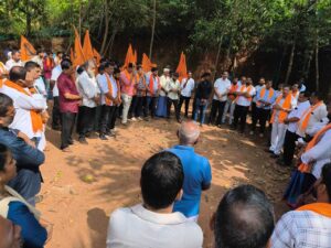 ಸರ್ವೆ ಗ್ರಾಮ ದೇವರ ಜಾತ್ರೋತ್ಸವ ಪ್ರಯುಕ್ತ ಭಕ್ತಕೋಡಿ ಜಂಕ್ಷನ್ ಅಲ್ಲಿ ಅಳವಡಿಸಲಾಗಿದ್ದ ಭಗವಧ್ವಜ ಕಿತ್ತು ತೆಗೆದಿರುವ ಕಾಂಗ್ರೆಸ್ ಸರ್ಕಾರದ ಹಿಂದೂ ವಿರೋಧಿ ನೀತಿ ವಿರುದ್ಧ ಹಾಗೂ ಭಗವದ್ವಜ ಹಾಕಿರುವವರ ಮೇಲೆ ಕೇಸ್ ದಾಖಲು ಮಾಡಿರುವುದನ್ನು ಖಂಡಿಸಿ ಹಾಗೂ ಭಗವದ್ವಜ ವಿರುದ್ಧ ಮಾನಸಿಕತೆ ಇರುವವರಿಗೆ ಸದ್ಬುದ್ದಿ ಕೊಡಲಿ ಎಂದು ಹಿಂದೂ ಹಿತರಕ್ಷಣಾ ಸಮಿತಿ ವತಿಯಿಂದ ಸರ್ವೆ ದೇವಸ್ಥಾನದಲ್ಲಿ ಸಾಮೂಹಿಕ ಪ್ರಾರ್ಥನೆ ಹಾಗೂ ಖಂಡನಾ ಸಭೆ ನಡೆಯಿತು.