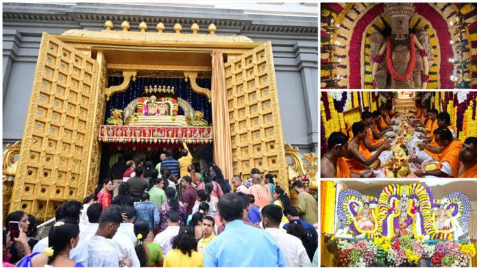 ಬೆಂಗಳೂರಿನ ವೈಯಾಲಿಕಾವಲ್ನ ಟಿಟಿಡಿ ದೇವಾಲಯದಲ್ಲಿ ಮಧ್ಯರಾತ್ರಿ 1.30ರಿಂದಲೇ ದರ್ಶನ ಪ್ರಾರಂಭವಾಗಿದ್ದು, ಇಂದು ರಾತ್ರಿ 12 ಗಂಟೆಯವರೆಗೂ ದರ್ಶನ ವ್ಯವಸ್ಥೆ ಕಲ್ಪಿಸಲಾಗಿದೆ.