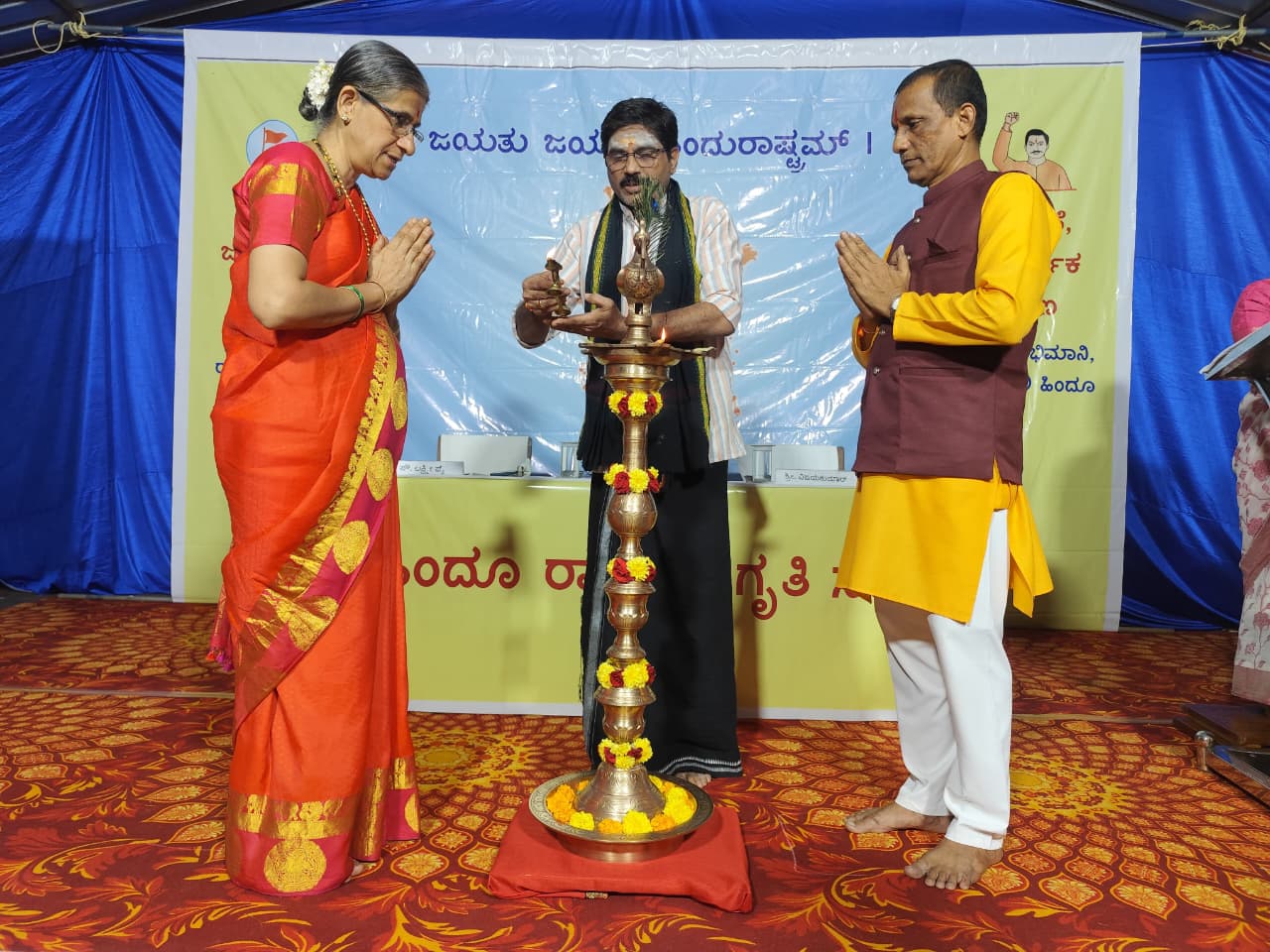 ಹಿಂದೂ ಜನಜಾಗೃತಿ ಸಮಿತಿಯ ಶ್ರೀ ವಿಜಯ ಕುಮಾರ್ ಮಾತನಾಡಿ, “ಸಮಿತಿಯು ಕಳೆದ 23 ವರ್ಷಗಳಿಂದ ದೇಶಾದ್ಯಂತ ನಡೆಸುತ್ತಿರುವ ಸಭೆಗಳ ಫಲವಾಗಿ ಇಂದು ಹಿಂದೂ ರಾಷ್ಟ್ರದ ಬಗ್ಗೆ ವ್ಯಾಪಕ ಚರ್ಚೆಗಳು ನಡೆಯುತ್ತಿವೆ. ಕುಂಭಮೇಳದ ಸಂತರು ಹಾಗೂ ಪೂಜನೀಯ ವೀರೇಂದ್ರ ಶಾಸ್ತ್ರಿಯವರಂತಹ ಮಹನೀಯರು ಇಂದು ಬಹಿರಂಗವಾಗಿ ಹಿಂದೂ ರಾಷ್ಟ್ರವನ್ನು ಸಮರ್ಥಿಸುತ್ತಿರುವುದು ನಮ್ಮ ಅಭಿಯಾನದ ಫಲಶ್ರುತಿಯಾಗಿದೆ. ಲವ್ ಜಿಹಾದ್, ಲ್ಯಾಂಡ್ ಜಿಹಾದ್ ಹಾಗೂ ಜನಸಂಖ್ಯಾ ಸ್ಫೋಟದಂತಹ ಸಂಚುಗಳ ವಿರುದ್ಧ ನಾವೆಲ್ಲರೂ ಧರ್ಮ ಯೋಧರಾಗಿ ಹೋರಾಡಬೇಕಿದೆ,” ಎಂದು ತಿಳಿಸಿದರು.