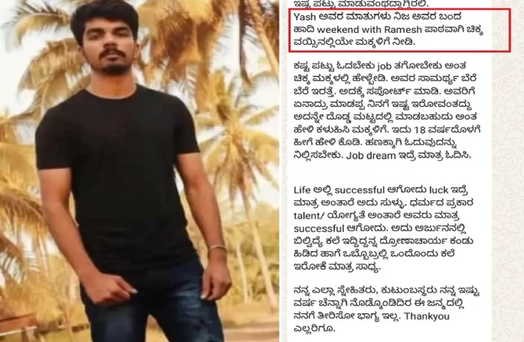 ‘ವೀಕೆಂಡ್ ವಿತ್ ರಮೇಶ್’ ಪಾಠವಾಗಿ ಇಡಿ, ‘ಶಿಕ್ಷಣ ವ್ಯವಸ್ಥೆ’ ಬದಲಾಯಿಸಿ: ‘ಡೆತ್ ನೋಟ್’ ಬರೆದಿಟ್ಟು ಯುವಕ ಆತ್ಮಹತ್ಯೆ- ಕಹಳೆ ನ್ಯೂಸ್
