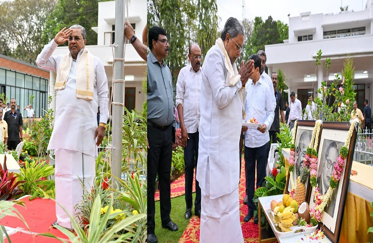 ಬೆಂಗಳೂರು : ಗಣರಾಜ್ಯೋತ್ಸವದ ಪ್ರಯುಕ್ತ ಮುಖ್ಯಮಂತ್ರಿ ಸಿದ್ದರಾಮಯ್ಯ ಅವರು ಕಾವೇರಿ ನಿವಾಸದಲ್ಲಿ ಧ್ವಜಾರೋಹಣ ನೆರವೇರಿಸಿ ಡಾ.ಬಿ.ಆರ್.ಅಂಬೇಡ್ಕರ್ ಮತ್ತುಮಹಾತ್ಮ ಗಾಂಧಿ ಅವರ ಭಾವಚಿತ್ರಕ್ಕೆ ಪುಷ್ಪಾರ್ಚನೆ ಮಾಡಿ ವಂದಿಸಿದರು.