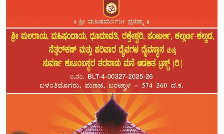 ಬಳಂತಿಮೊಗರು ಶ್ರೀ ಮಲರಾಯ, ಮಹಿಷಂದಾಯ, ಧೂಮಾವತಿ, ರಕೇಶ್ವರಿ, ಪಂಜುರ್ಲಿ, ಕಲ್ಲುರ್ಟಿ-ಕಲ್ಕುಡ, ನೆತ್ತರ್ಕಣ್ ಮತ್ತು ಪರಿವಾರ ದೈವಗಳ ದೈವಸ್ಥಾನ ಮತ್ತು ಸುವರ್ಣ ಕುಟುಂಬಸ್ಥರ ತರವಾಡು ಮನೆ ಆಡಳಿತ ಟ್ರಸ್ಟ್ (ರಿ.) ನಲ್ಲಿ ಜ.30 ಮತ್ತು ಜ.31ರಂದು ಶ್ರೀ ದೈವಗಳ ವರ್ಷಾವಧಿ ನೇಮೋತ್ಸವ – ಕಹಳೆ ನ್ಯೂಸ್