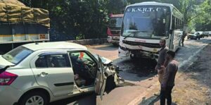 ಮಂಗಳೂರು-ಬೆಂಗಳೂರು ರಾಷ್ಟ್ರೀಯ ಹೆದ್ದಾರಿ 75ರ ಗುಂಡ್ಯ ಸಮೀಪ ಶುಕ್ರವಾರ ಕೆಎಸ್ಆರ್ಟಿಸಿ ರಾಜಹಂಸ ಬಸ್ ಹಾಗೂ ಸ್ವಿಫ್ಟ್ ಕಾರಿನ ನಡುವೆ ಸಂಭವಿಸಿದ ಭೀಕರ ಅಪಘಾತದಲ್ಲಿ ಮೂವರು ಸಾವನ್ನಪ್ಪಿದ್ದಾರೆ. ಮದುವೆ ಮುಗಿಸಿ ಮನೆಗೆ ಮರಳುತ್ತಿದ್ದ ವೇಳೆ ಯಮರೂಪಿಯಾಗಿ ಬಂದ ಬಸ್ ಇವರ ಬದುಕನ್ನು ಬಲಿಪಡೆದಿದೆ.