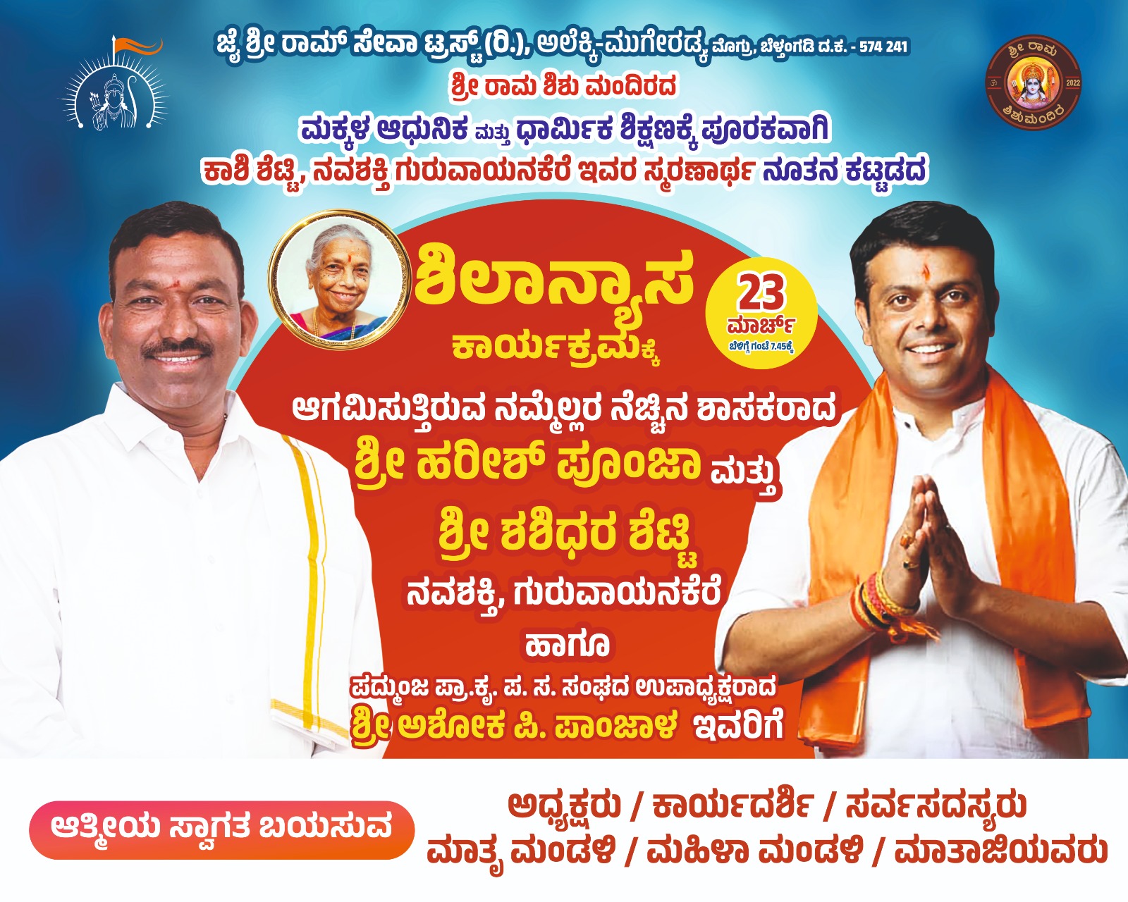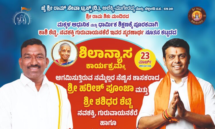 ಮೊಗ್ರು : ನಾಳೆ (ಮಾ.23) ಜೈ ಶ್ರೀರಾಮ್ ಸೇವಾ ಟ್ರಸ್ಟ್ (ರಿ.)ಅಲೆಕ್ಕಿ -ಮುಗೇರಡ್ಕ ಮೊಗ್ರು ಶ್ರೀರಾಮ ಮಂದಿರದ ಮಕ್ಕಳ ಆಧುನಿಕ ಶಿಕ್ಷಣಕ್ಕೆ ಪೂರಕವಾಗಿ ಕಾಶಿ ಶೆಟ್ಟಿ ನವಶಕ್ತಿ ಗುರುವಾಯನಕೆರೆ ಇವರ ಸ್ಮರಣಾರ್ಥ ನೂತನ ಕಟ್ಟಡದ ಶಿಲಾನ್ಯಾಸ ಕಾರ್ಯಕ್ರಮ- ಕಹಳೆ ನ್ಯೂಸ್
