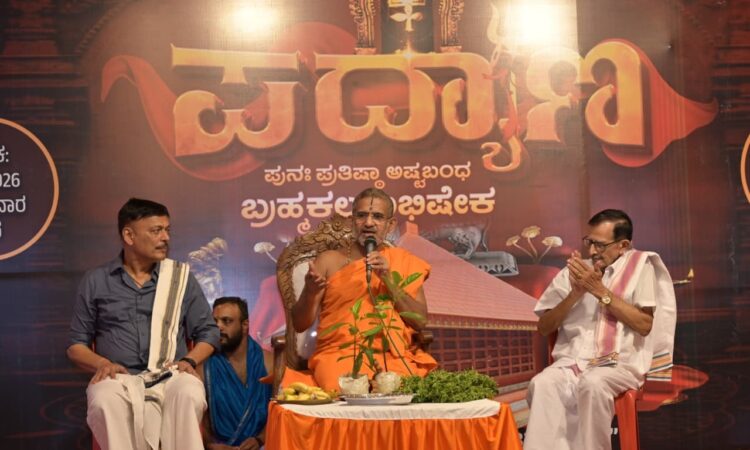 ಪದ್ಯಾಣ ಶ್ರೀ ಮಹಾಲಿಂಗೇಶ್ವರ ಕ್ಷೇತ್ರದಲ್ಲಿ ನಡೆಯುತ್ತಿರುವ ಬ್ರಹ್ಮಕಲಶಾಭಿಷೇಕ ಕಾರ್ಯಕ್ರಮದ ಹಿನ್ನೆಲೆ ಬುಧವಾರ ಕ್ಷೇತ್ರಕ್ಕೆ ಭೇಟಿ ನೀಡಿ ಆಶೀರ್ವಚನ ನೀಡಿದರು.