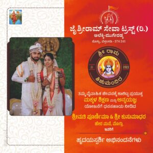 ಈ ಸಂದರ್ಭದಲ್ಲಿ ಕನ್ಯಾಡಿಯಲ್ಲಿ ಬೆನ್ನುಹುರಿ ಅಪಘಾತಕ್ಕೊಳಗಾದ ದಿವ್ಯಾoಗರಿಗೆ ನಿರ್ಮಾಣವಾಗುವ ನೂತನ ಪುನಶ್ಚೇತನ ಕೇಂದ್ರದ ಕಟ್ಟಡಕ್ಕೆ ರೂ. 15,000/- ಹಾಗೂ ಮೊಗ್ರು ಗ್ರಾಮ ಮುಗೇರಡ್ಕ ಅಲೆಕ್ಕಿ ಜೈ ಶ್ರೀರಾಮ್ ಸೇವಾ ಟ್ರಸ್ಟ್ (ರಿ.) ಶ್ರೀ ರಾಮ ಶಿಶುಮಂದಿರದ ಮಕ್ಕಳ ಶಿಕ್ಷಣ ಮತ್ತು ಅನ್ನಯಜ್ಞ ಯೋಜನೆಗೆ ರೂ. 5,000/- ದೇಣಿಗೆಯನ್ನು ನೀಡಿ ಸಹಕರಿಸಿದ್ದಾರೆ. ಕನ್ಯಾಡಿ ಸೇವಾಭಾರತಿ ಕೇಂದ್ರದ ಅಧ್ಯಕ್ಷರು ಹಾಗೂ ಸೇವಾಧಾಮದ ಸಂಸ್ಥಾಪಕರಾದ ಶ್ರೀ ಕೆ. ವಿನಾಯಕ ರಾವ್, ಖಜಾoಚಿ ಶ್ರೀ ಎ.ಜೈ ರಾಜ್ ಸಾಲ್ಯಾನ್, ಸಿಬ್ಬಂದಿ ವರ್ಗ, ಮೊಗ್ರು ಗ್ರಾಮ ಅಲೆಕ್ಕಿ ಶಿಶುಮಂದಿರ ಸೇವಾ ಟ್ರಸ್ಟ್ ನ ಪದಾಧಿಕಾರಿಗಳು ಸಂಸ್ಥೆಯ ಪರವಾಗಿ ದೇಣಿಗೆಯನ್ನು ಸ್ವೀಕರಿಸಿ ನವ ಜೋಡಿಗಳಿಗೆ ಶುಭ ಹಾರೈಸಿ, ಕೃತಜ್ಞತೆ ಸಲ್ಲಿಸಿದರು.