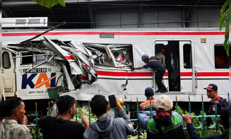 ಜಕಾರ್ತಾ ಹೊರವಲಯದ ಬೆಕಾಸಿಯಲ್ಲಿ ಸೋಮವಾರ ತಡರಾತ್ರಿ ಪ್ರಯಾಣಿಕ ರೈಲು ಹಾಗೂ ಮತ್ತೊಂದು ರೈಲಿನ ನಡುವೆ ಡಿಕ್ಕಿ ಸಂಭವಿಸಿದೆ. ಅಪಘಾತದಲ್ಲಿ ಇನ್ನೂ ಹಲವು ಪ್ರಯಾಣಿಕರು ರೈಲಿನೊಳಗೆ ಸಿಲುಕಿಕೊಂಡಿದ್ದು, ರಕ್ಷಣಾ ಕಾರ್ಯಾಚರಣೆ ನಡೆಯುತ್ತಿದೆ.