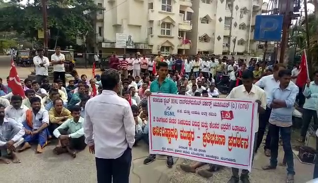 ಮಂಗಳೂರು: ಮಂಗಳೂರಿನ ಬಿಎಸ್ಎನ್ಎಲ್ ಕಚೇರಿ ಮುಂದೆ ಬಿಎಸ್ಎನ್ಎಲ್ ನಾನ್ ಪರ್ಮನೆಂಟ್ ನೌಕರರು ಸಂಬಳ ಬಂದ್ ಹಿನ್ನೆಲೆಯಲ್ಲಿ ಪ್ರತಿಭಟನೆ ನಡೆಸಿದರು.