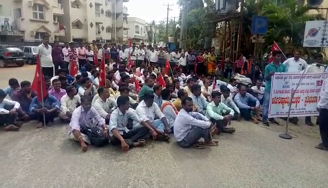 ಎರಡು ತಿಂಗಳಿಂದ ಸಂಬಳ ಬಂದ್ ಹಿನ್ನೆಲೆ ಕೆಲಸದ ಭದ್ರತೆ ನೀಡಲು ಆಗ್ರಹಿಸಿ ಬಿಎಸ್ಎನ್ಎಲ್ ನಾನ್ ಪರ್ಮನೆಂಟ್ ನೌಕರರು ಪ್ರತಿಭಟನೆ ನಡೆಸಿದರು.