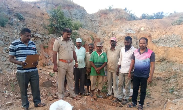 ಹೆಚ್.ತಿಮ್ಮಾಪುರ ಗ್ರಾಮದ ಸರ್ವೆ ನಂಬರ್ 26 ರಲ್ಲಿ ಭದ್ರಾವತಿ ಮೂಲದ ಅರುಣ್ ಕುಮಾರ್ ಎಂಬುವರು ಪರವಾನಗಿ ಪಡೆಯದೆ ಅಕ್ರಮವಾಗಿ ಗಲ್ಲು ಗಣಿಗಾರಿಕೆ ನಡೆಸುತ್ತಿದ್ರು, ಅಲ್ದೆ ಸ್ಫೋಟಕ ವಸ್ತುಗಳನ್ನ ಬಳಸಿ ಕಲ್ಲು ಕೋರೆಯನ್ನ ನಡೆಸುತ್ತಿದ್ರು,