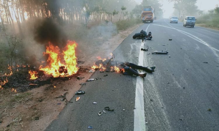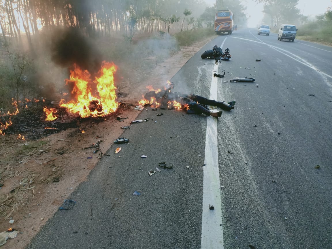 ಕೋಲಾರ ಜಿಲ್ಲೆಯ ಬಂಗಾರಪೇಟೆ ಹೊರವಲಯದಲ್ಲಿ ಅಪಘಾತದ ಸಂಭವಿಸಿದೆ. ನೀರಜ್ ಹಾಗೂ ಅವರ ಸ್ನೇಹಿತ ಬೈಕ್ನಲ್ಲಿ ಮುಂಜಾನೆ ತೆರಳುತ್ತಿದ್ದ ವೇಳೆ ಮುಂದಿನಿಂದ ಬಂದ ಖಾಸಗಿ ಬಸ್ಗೆ ಬೈಕ್ ಢಿಕ್ಕಿ ಹೊಡೆದಿದೆ, ಇದರಿಂದಾಗಿ ಬೈಕ್ ಟ್ಯಾಂಕರ್ಗೆ ಬೆಂಕಿ ಹೊತ್ತಿಕೊಂಡು ಬೈಕ್ ಸವಾರ ನೀರಜ್ ಸ್ಥಳದಲ್ಲೇ ಸುಟ್ಟು ಕರಕಲಾಗಿ ಸಾವನ್ನಪ್ಪಿದ್ದಾನೆ.