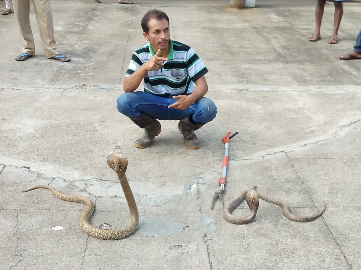 ಆದ್ರೆ, ಅದು ಪತ್ತೆಯಾಗಿಲ್ಲ. ಹಾಗಾಗಿ, ಸೆರೆ ಹಿಡಿದ ಎರಡು ಹಾವನ್ನ ಸ್ಥಳಿಯ ಅರಣ್ಯಕ್ಕೆ ಬಿಟ್ಟಿದ್ದಾರೆ. ಎರಡು ಬೃಹತ್ ನಾಗರಹಾವುಗಳನ್ನ ಕಂಡು ಸಿಬ್ಬಂದಿಗಳು ನಿಟ್ಟುಸಿರು ಬಿಟ್ಟಿದ್ದಾರೆ.