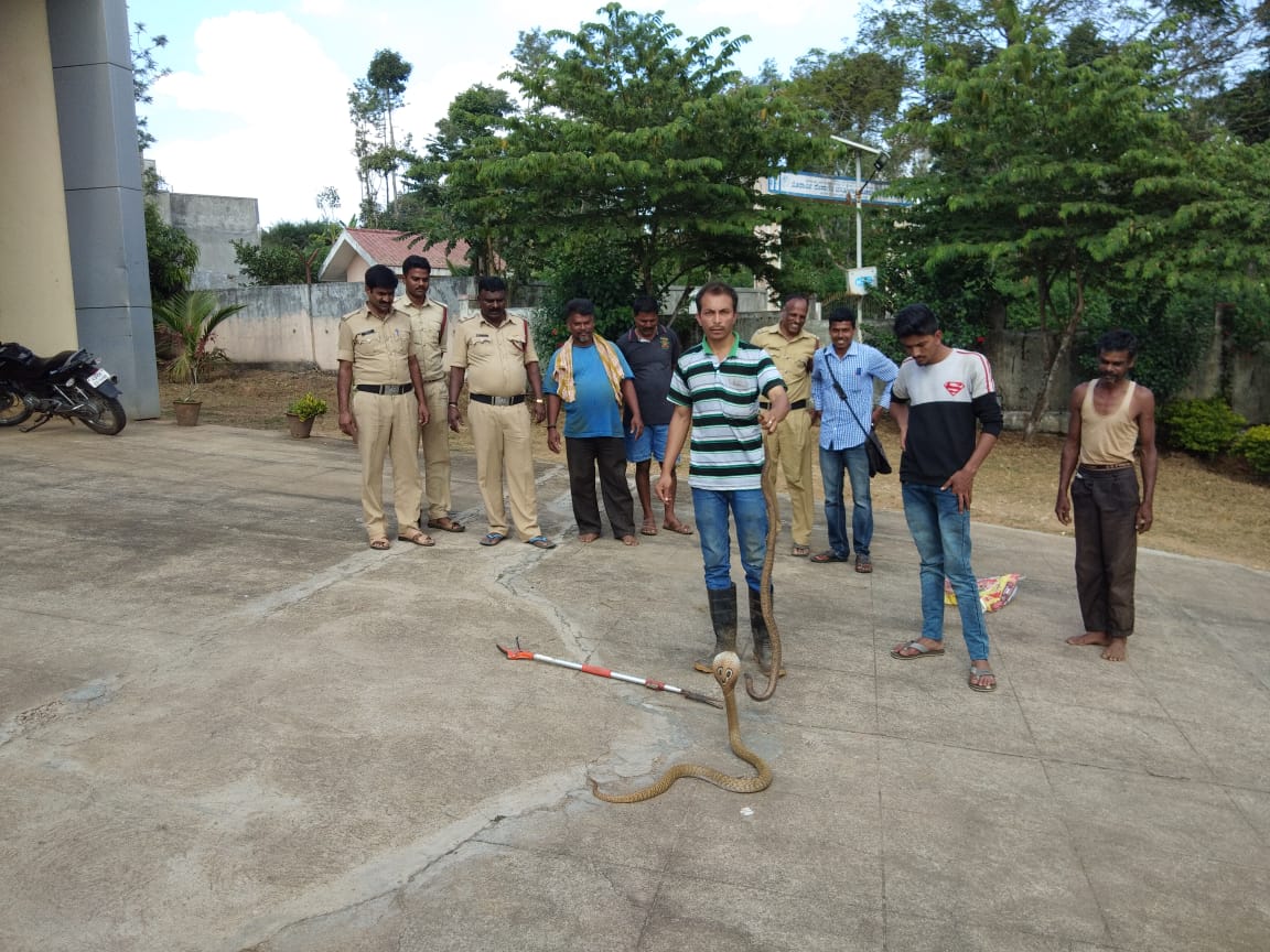 ಒಂದೇ ಜಾಗದಲ್ಲಿ ಆಟವಾಡ್ತಿದ್ದ ಮೂರು ನಾಗರಹಾವನ್ನ ನೋಡಿ ಸಿಬ್ಬಂದಿಗಳು ಗಾಬರಿಗೊಂಡಿದ್ರು. ಕೂಡಲೇ ಉರಗತಜ್ಞ ಆರೀಫ್ಗೆ ಕೆರೆ ಮಾಡಿದ್ದಾರೆ. ವಿಷಯ ತಿಳಿದು ಸ್ಥಳದಕ್ಕೆ ಬಂದ ಆರೀಫ್ ಕಾರ್ಯಚರಣೆ ನಡೆಸಿ ಎರಡನ್ನ ಸೆರೆ ಹಿಡಿದಿದ್ದಾರೆ.