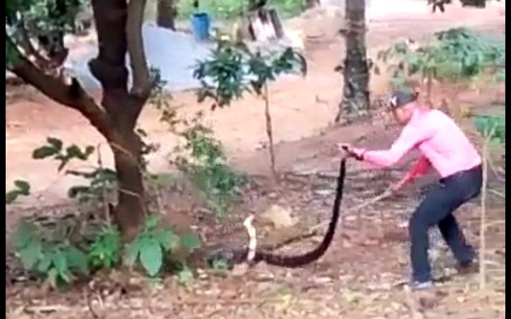 ಉರಗ ತಜ್ಞನ ಸೊಂಟದೆತ್ತರದಷ್ಟು ಮೇಲೆರಗಿದ ಕಾಳಿಂಗನ ಆರ್ಭಟಕ್ಕೆ ಬೆಚ್ಚಿಬಿದ್ದ ಉರಗ ತಜ್ಞ ಹರೀಂದ್ರ, 11 ಅಡಿ ಉದ್ದದ ಕಾಳಿಂಗ ಸರ್ಪವನ್ನು ಸೆರೆಹಿಡಿದಿದ್ದಾರೆ.