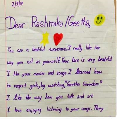 ಅಮೆರಿಕಾ ರಶ್ಮಿಕಾ ಮಂದಣ್ನ ಫ್ಯಾನ್ ಕ್ಲಬ್ ತನ್ನ ಟ್ವೀಟ್ ನಲ್ಲಿ ಪುಟ್ಟ ಅಭಿಮಾನಿಯ ಈ ಪತ್ರವನ್ನು ಹಂಚಿಕೊಂಡಿದೆ. “ರಶ್ಮಿಕಾ ಅವರಿಗೆ ನ್ಯೂಯಾರ್ಕ್ನ ಪುಟ್ಟ ಅಭಿಮಾನಿಯೊಬ್ಬರು ಚಿಕ್ಕ ಪತ್ರವನ್ನು ಬರೆದಿದ್ದಾರೆ.