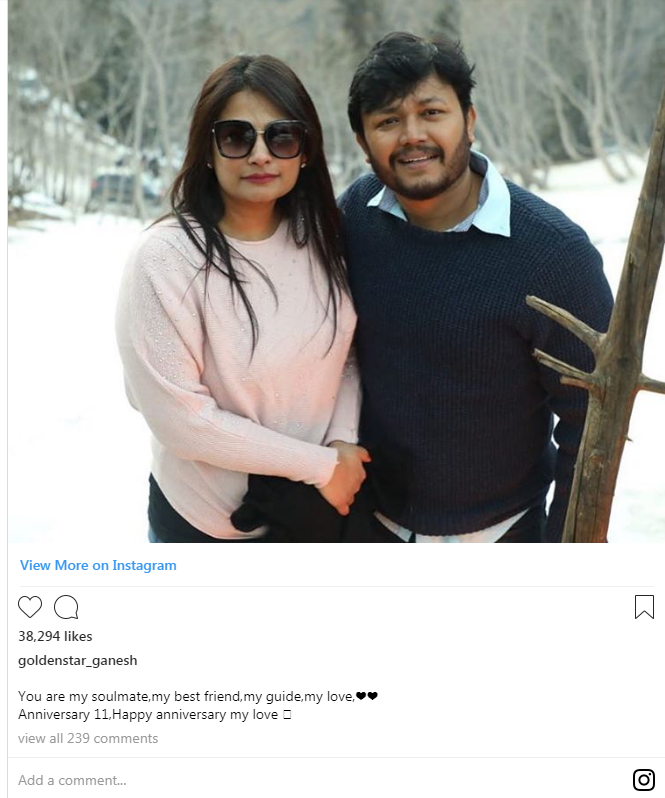 ಇಂಚು ತಮ್ಮ 11ನೇ ವಿವಾಹ ವಾರ್ಷಿಕೋತ್ಸವದ ಅಂಗವಾಗಿ ಸಾಮಾಜಿಕ ಜಾಲತಾಣದಲ್ಲಿ ಗಣೇಶ್ , ನನ್ನ ಸೌಲ್ ಮೇಟ್, ನನ್ನ ಗೆಳತಿ, ನನ್ನ ಮಾರ್ಗದರ್ಶಕಿ ನನ್ನ ಪ್ರೀತಿ, 11 ನೇ ವರ್ಷದ ವಿವಾಹ ವಾರ್ಷಿಕೋತ್ಸವದ ಹಾರ್ದಿಕ ಶುಭಾಶಯಗಳು ಎಂದು ಇನ್ಸ್ಟಾಗ್ರಾಂ ನಲ್ಲಿ ಹಂಚಿಕೊಂಡಿದ್ದಾರೆ.