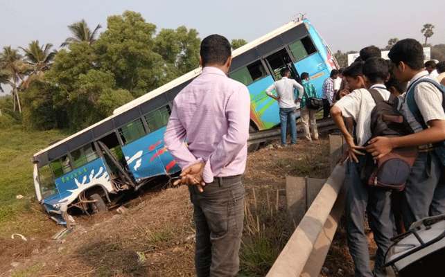 ಇದರಿಂದ ಬಸ್ಸಿನಲ್ಲಿದ್ದ ಪ್ರಯಾಣಿಕರಲ್ಲಿ ಕೆಲವರಿಗೆ ಸಣ್ಣಪುಟ್ಟ ಗಾಯಗಳಾಗಿವೆ ಎಂದು ತಿಳಿದುಬಂದಿದೆ. ಅಪಘಾತಕ್ಕೆ ಬಸ್ಸಿನ ಅತಿಯಾದ ವೇಗವೇ ಕಾರಣ ಎಂದು ಹೇಳಲಾಗುತ್ತಿದೆ