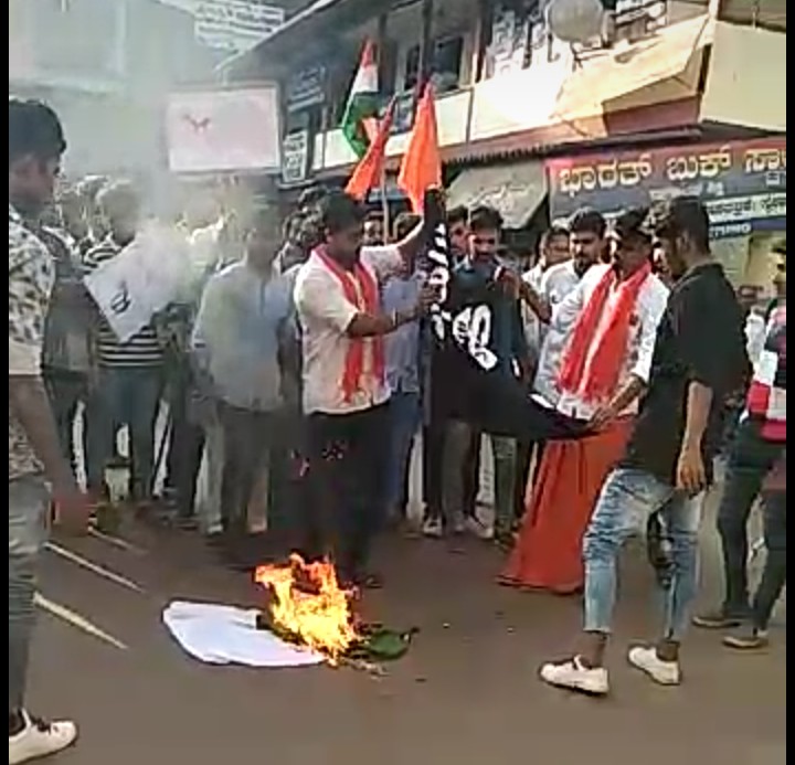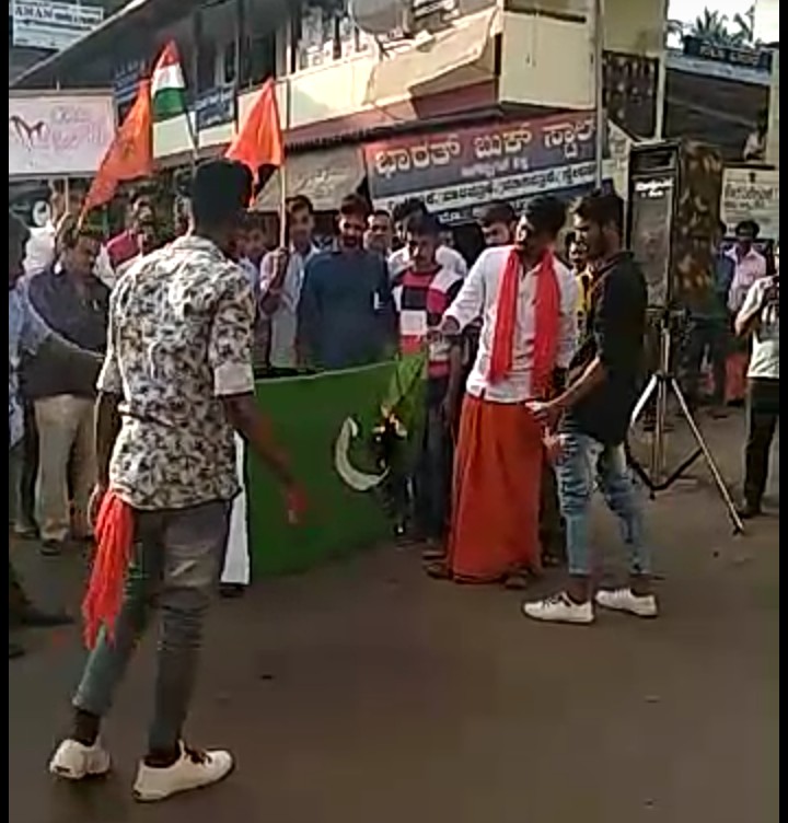 ವಿಟ್ಲ: ಕಾಶ್ಮೀರದಲ್ಲಿ ನಡೆದ ಉಗ್ರ ದಾಳಿಯನ್ನು ಖಂಡಿಸಿ ಜಿಲ್ಲೆಯಲ್ಲೇ ಮೊದಲ ಬಾರಿಗೆ ವಿಟ್ಲ ಪ್ರಖಂಡ ಬಜರಂಗದಳದ ವತಿಯಿಂದ ನಡೆದ ಬೃಹತ್ ಪ್ರತಿಭಟನೆಯಲ್ಲಿ ಪಾಕಿಸ್ಥಾನ ಧ್ವಜವನ್ನು ಮತ್ತು ಐಸಿಸ್ ಧ್ವಜವನ್ನು ಸುಟ್ಟು ಕಾರ್ಯಕರ್ತರು ಆಕ್ರೋಶ ವ್ಯಕ್ತಪಡಿಸಿದರು.