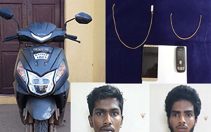 ಆರೋಪಿಗಳಿಂದ 2 ಚಿನ್ನದ ಸರ, 2 ಮೊಬೈಲ್ ಫೋನ್ ಹಾಗೂ ಒಂದು ಹೊಂಡಾ ಡಿಯೋ ದ್ವಿಚಕ್ರ ವಾಹನ ವಶಪಡಿಸಿಕೊಳ್ಳಲಾಗಿದೆ.