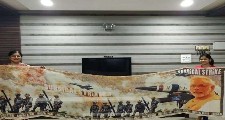 ಈ ಮಧ್ಯೆ ಸರ್ಜಿಕಲ್ ದಾಳಿಯಾಗುತ್ತಿದ್ದಂತೇ ಸೂರತ್ನ ಬಟ್ಟೆ ವ್ಯಾಪಾರಿಯೋರ್ವರು ಕೇವಲ ನಾಲ್ಕು ಗಂಟೆಗಳಲ್ಲಿ ಭಾರತೀಯ ವಾಯುಸೇನೆಯ ಸೈನಿಕರು ಮತ್ತು ಪ್ರಧಾನಿ ನರೇಂದ್ರ ಮೋದಿ ಅವರ ಭಾವಚಿತ್ರವುಳ್ಳ ವಿಶೇಷ ಸೀರೆಯನ್ನು ತಯಾರಿಸಿದ್ದಾರೆ.
