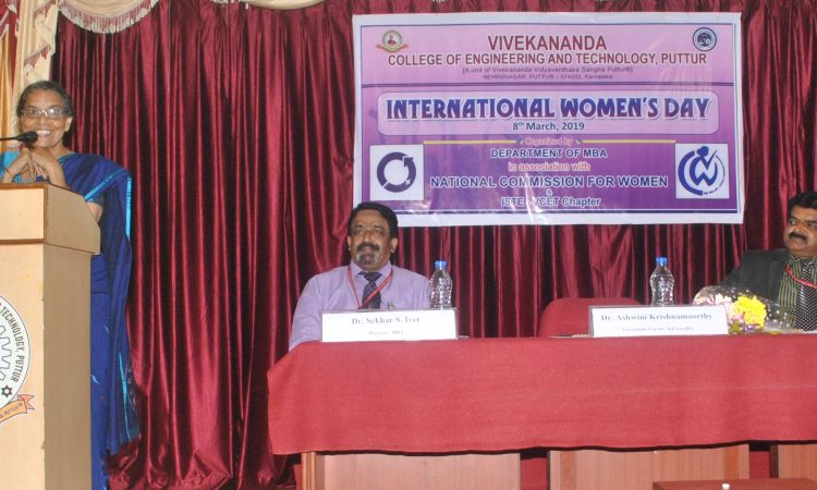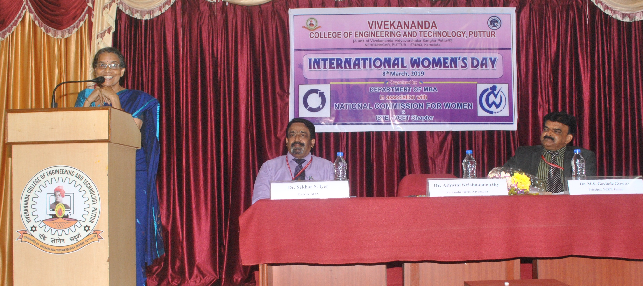 ಅವರು ಪುತ್ತೂರಿನ ವಿವೇಕಾನಂದ ಇಂಜಿನಿಯರಿಂಗ್ ಕಾಲೇಜಿನ ಎಂಬಿಎ ವಿಭಾಗದ ಆಶ್ರಯದಲ್ಲಿ ಶ್ರೀರಾಮ ಸಭಾಭವನದಲ್ಲಿ ನಡೆದ ಅಂತಾರಾಷ್ಟ್ರೀಯ ಮಹಿಳಾ ದಿನಾಚರಣೆ ಸಮಾರಂಭದ ಮುಖ್ಯ ಅತಿಥಿಗಳಾಗಿ ಮಾತಾಡಿದರು. ಹೆಣ್ಣು ಆಕಾಶದೆತ್ತರದಷ್ಟನ್ನೂ ಸಾಧಿಸಬಲ್ಲಳು ಎಂಬುದನ್ನು ಸಾಧಿಸಿ ತೋರಿಸಿದ ಅನೇಕ ಮಹಿಳೆಯರು ನಮ್ಮ ನಡುವೆ ಇದ್ದಾರೆ. ಅವರ ಸಾಧನೆಯ ಪಥ ಎಲ್ಲರಿಗೂ ದಾರಿ ದೀಪವಾಗಲಿ ಎಂದು ಆಶಿಸಿದರು.