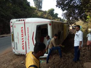 ಬೆಂಗಳೂರಿನಿಂದ ಮಂಗಳೂರಿಗೆ ಬರುತ್ತಿದ್ದ ವಿಆರ್ ಎಲ್ ಸಂಸ್ಥೆಯ ಬಸ್ ಬೆದ್ರೋಡಿ ತಿರುವಿನಲ್ಲಿ ಚಾಲಕನ ನಿಯಂತ್ರಣ ತಪ್ಪಿ ಮಗುಚಿ ಬಿದ್ದಿದೆ. ಗಾಯಗೊಂಡ ಮೂವರನ್ನು ಉಪ್ಪಿನಂಗಡಿ ತನಕ ರಿಕ್ಷಾದಲ್ಲಿ ಸಾಗಿಸಿ ಬಳಿಕ ಮಂಗಳೂರಿನ ಖಾಸಗಿ ಆಸ್ಪತ್ರೆಗೆ ಆ್ಯಂಬುಲೆನ್ಸ್ನಲ್ಲಿ ಸಾಗಿಸಲಾಯಿತು.