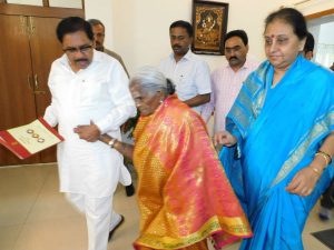 ಬೆಂಗಳೂರು: ದೆಹಲಿಯಲ್ಲಿ ರಾಷ್ಟ್ರಪತಿ ಅವರಿಂದ ಪದ್ಮಶ್ರೀ ಪ್ರಶಸ್ತಿ ಸ್ವೀಕರಿಸಿದ ವೃಕ್ಷಮಾತೆ, ಸಾಲುಮರದ ತಿಮ್ಮಕ್ಕ ಅವರನ್ನು ಉಪಮುಖ್ಯಮಂತ್ರಿ ಡಾ.ಜಿ. ಪರಮೇಶ್ವರ್ ಸದಾಶಿವನಗರ ಬಿಡಿಎ ನಿವಾಸದಲ್ಲಿ ಅಭಿನಂದಿಸಿದರು.