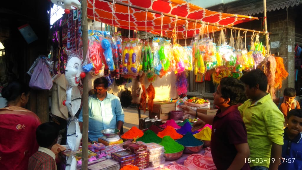ವಿವಿಧ ರಂಗಿನ ಬಣ್ಣಗಳ ಪಿಚಕಾರಿಗಳು, ಬಣ್ಣದ ಕುದಲಿನಾಕಾರದ ಪೋಷಾಕುಗಳು, ಬಗೆ ಬಗೆಯ ಮಾಸ್ಕಗಳ ಖರೀದಿಸಲು ಜನರು ಮುಗಿಬಿಳುವ ದೃಶ್ಯ ಎಲ್ಲೆಡೆ ಸರ್ವೇ ಸಾಮಾನ್ಯವಾಗಿತು ಜೋತೆಗೆ ವಿವಿಧ ಆಕಾರಗಳ ಮಾಸ್ಕಗಳು ಈ ಬಾರಿ ಆಕರ್ಷಣೆಯ ವಸ್ತುಗಳಾಗಿವೆ.