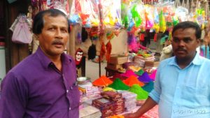 ನಗರದ ಬಣ್ಣದ ವ್ಯಾಪಾರಿಗಳಾದ ಅಶೋಕ ಮಹಾಜನ ಹಾಗೂ ಭೀಮು ರಾವಳ ಮಾತನಾಡಿ ನಾವು ಎಂಟು-ಹತ್ತು ವರ್ಷ ಗಳಿಂದಾ ಬಣ್ಣದ ವ್ಯಾಪಾರ ಮಾಡುತ್ತಿದ್ದು 15 ಬಗೆಯ ಪಾವುಡರ್ ಬಣ್ಣ ಮಾರಾಟ ಮಾಡುತ್ತೆವೆ. ಇದು ಯಾವುದೆ ಅಪಾಯಕಾರಿಯಾಗಿಲ್ಲಾ ಮತ್ತು ಮುಖವಾಡ, ಪಿಚಕಾರಿ, ಮಕ್ಕಳ ವಿವಿಧ ಆಕರ್ಷಣೆಯ ಪೋಷಾಕುಗಳು ಮಾರಾಟ ಮಾಡುತ್ತೆವೆ ವ್ಯಾಪಾರ ಜೋರಾಗಿದೆ ಎಂದು ತಿಳಿಸಿದರು.