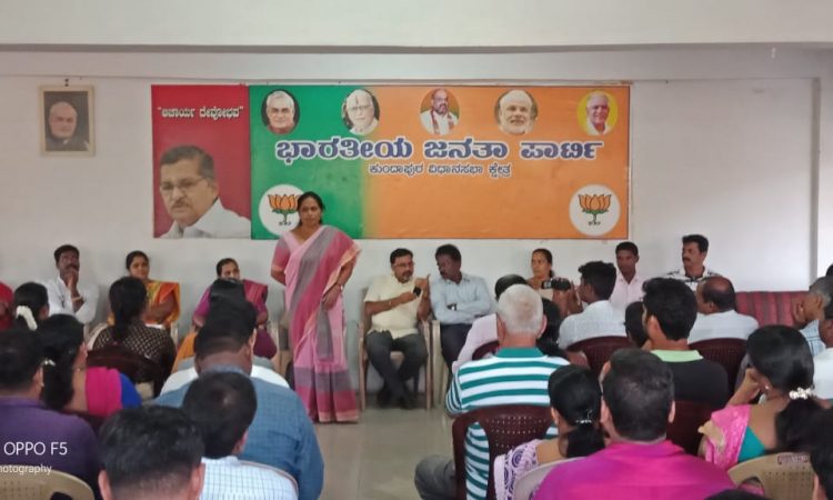 ಕುಂದಾಪುರ ಬಿಜೆಪಿ ಕಛೇರಿಯಲ್ಲಿ ಇಂದು ನಡೆದ ಶಕ್ತಿ ಕೇಂದ್ರ ಪ್ರಮುಖರ ಸಭೆ ನಡೆಯಿತು. ಸಭೆಯಲ್ಲಿ ಉಡುಪಿ ಚಿಕ್ಕಮಗಳೂರು ಸಂಸದೆಯಾದ ಶೋಭಾ ಕರಾಂದ್ಲಾಜೆಯವರು, ಮಂಡಲ ಅದ್ಯಕ್ಷರಾದ ಕಾಡೂರು ಸುರೇಶ್ ಶೆಟ್ಟಿ ಯವರು, ಪ್ರದಾನ ಕಾರ್ಯದರ್ಶಿ ಶಂಕರ್ ಅಂಕದಕಟ್ಟೆ, ಭಾಸ್ಕರ ಬಿಲ್ಲವ, ಯುವಮೋರ್ಚ ಅದ್ಯಕ್ಷರಾದ ಸತೀಶ್ ಪೂಜಾರಿ, ಮಹಿಳಾಮೋರ್ಚ ಅದ್ಯಕ್ಷರಾದ ಗುಣರತ್ನ ಹಾಗೂ ಪಕ್ಷದ ಎಲ್ಲಾ ಪದಾದಿಕಾರಿಗಳು, ಶಕ್ತಿಕೇಂದ್ರ ಕಾರ್ಯಕರ್ತರು, ಪ್ರಮಖರು, ಪುರಸಭಾ ಸದಸ್ಯರು ಕಾರ್ಯಕರ್ತರು ಉಪಸ್ಥಿತರಿದ್ದರು.