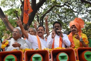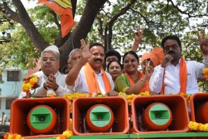 ತೆರೆದ ವಾಹನದಲ್ಲಿ ಕಾರ್ಯಕರ್ತರನ್ನುದ್ದೇಶಿಸಿ ಮಾತನಾಡಿದ ಡಿ.ವಿ ಸದಾನಂದಗೌಡ ಕಳೆದ ಐದು ವರ್ಷ ನಿಮ್ಮ ನಂಬಿಕೆಗೆ ಚ್ಯುತಿ ಬಾರದಂತೆ ಕೆಲಸ ಮಾಡಿರುವೆ.