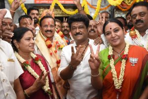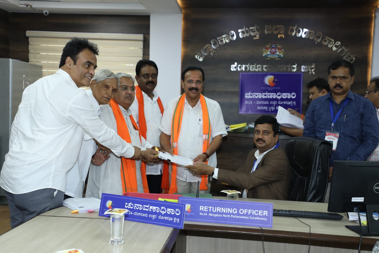 ನಾಮಪತ್ರ ಸಲ್ಲಿಸಿದ ಕೇಂದ್ರ ಸಚಿವ ಡಿ.ವಿ ಸದಾನಂದಗೌಡ. ಮೈಸೂರು ಬ್ಯಾಂಕ್ ವೃತ್ತದ ಆಂಜನೇಯ ಸ್ವಾಮಿ ದೇವಸ್ಥಾನದಲ್ಲಿ ವಿಶೇಷ ಪೂಜೆ ಸಲ್ಲಿಸಿದ್ರು. ಈ ವೇಳೆ ಡಿವಿಎಸ್ಗೆ ಬಿಜೆಪಿ ನಾಯಕರು ಬೆಂಬಲ ನೀಡಿದರು.