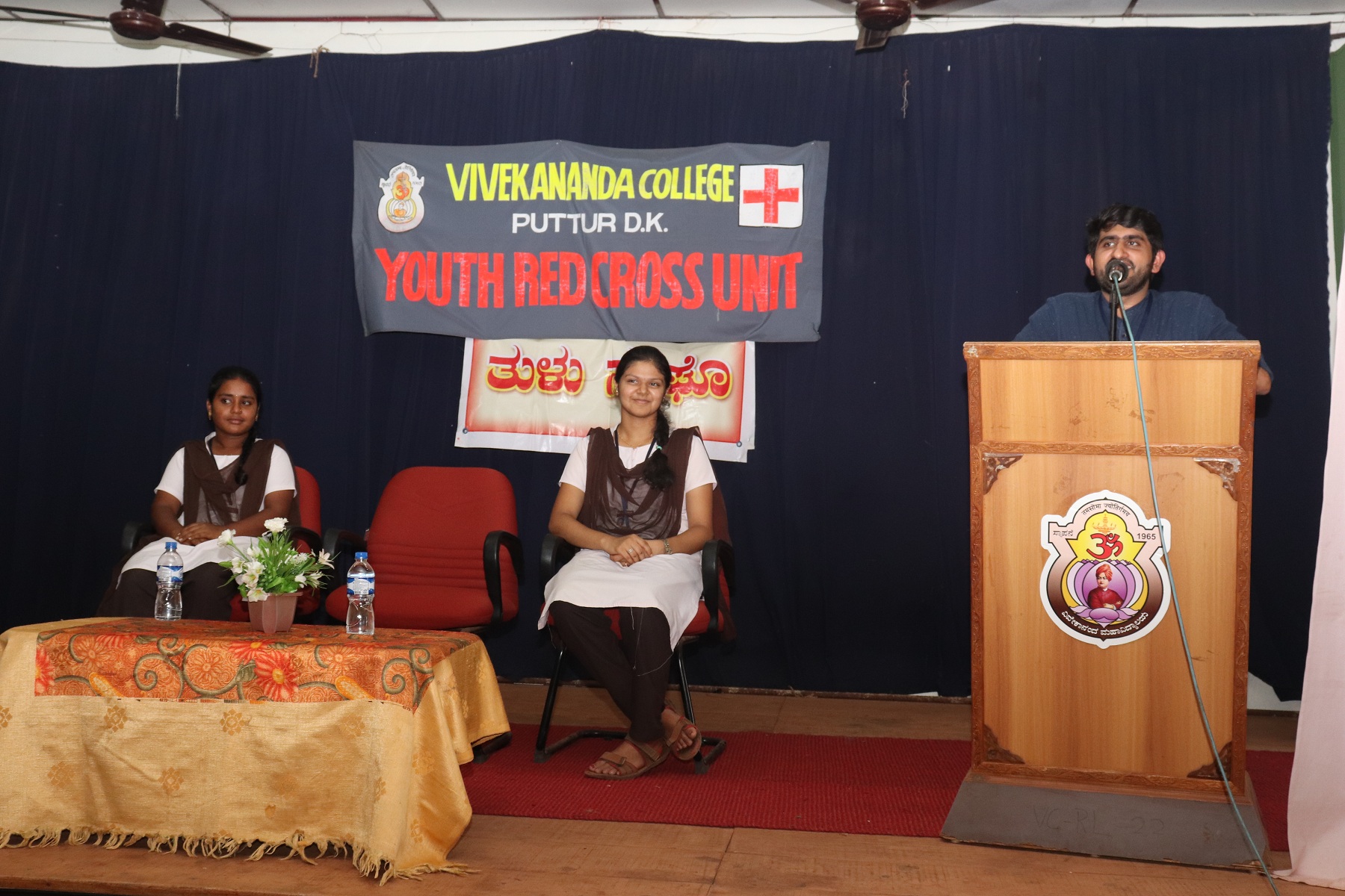 ವೇದಿಕೆಯಲ್ಲಿ ಕಾಲೇಜಿನ ರೆಡ್ ಕ್ರಾಸ್ ಘಟಕದ ಉಪಾಧ್ಯಕ್ಷೆ ನಿಧಿ, ತುಳು ಸಂಘದ ಪ್ರತಿನಿಧಿ ಉಷಾ ಉಪಸ್ಥಿತರಿದ್ದರು.