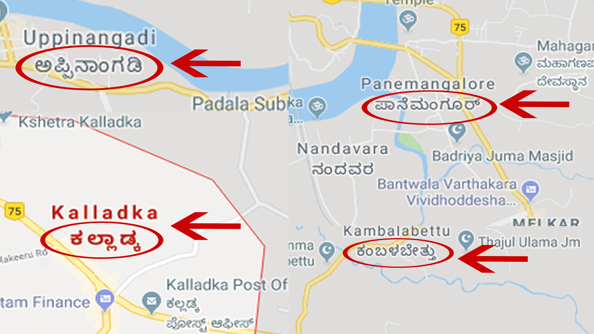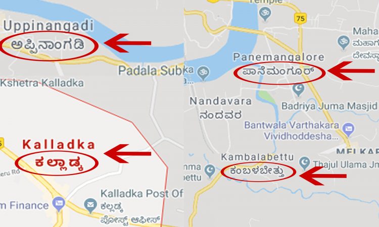 ಹಿಂದೆ ಗೂಗಲ್ ಮ್ಯಾಪಿನಲ್ಲಿ ಸ್ಥಳದ ಹೆಸರನ್ನು ಕೇವಲ ಆಂಗ್ಲ ಭಾಷೆಯಲ್ಲಿ ಮಾತ್ರ ನಮೂದಿಸಲಾಗುತ್ತಿತ್ತು, ತದನಂತರ ಕನ್ನಡ ಸೇರಿ ಪ್ರಾದೇಶಿಕ ಭಾಷೆಯಲ್ಲಿ ಸ್ಥಳದ ಹೆಸರನ್ನು ನಮೂದಿಸಲು ಆರಂಭವಾಯಿತು. ಆದರೆ ನಮೂದಿಸಿದ ಹೆಸರಿನಲ್ಲಿ ಕನ್ನಡದ ಕೊಲೆಯಾಗಿರುವುದು ವಿಷಾಧನೀಯ ಉಪ್ಪಿನಂಗಡಿಗೆ ‘ಅಪ್ಪಿನಾಂಗಡಿ’ ಎಂದು ಕಲ್ಲಡ್ಕಕ್ಕೆ ‘ಕಲ್ಲಾಡ್ಕ’ ಎಂದು ಕಂಬಳಬೆಟ್ಟಿಗೆ ‘ಕಂಬಲಬೇತ್ತು’ ಪಾಣೆಮಂಗಳೂರಿಗೆ ‘ಪಾನೆಮಂಗೂರ್’ ಎಂದು ತಪ್ಪು ತಪ್ಪಾಗಿ ಬರೆಯಲಾಗಿದೆ. ಈ ಬಗ್ಗೆ ಸಂಬಂಧಪಟ್ಟ ಗೂಗಲ್ ಅಧಿಕಾರಿಗಳು ಗಮನಹರಿಸಬೇಕಿದೆ