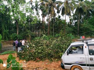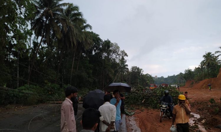 ಪೆರಾಜೆ: ನಿನ್ನೆ ಸಂಜೆ ಸುರಿದ ಭೀಕರ ಗಾಳಿ ಮಳೆಗೆ ಮರವೊಂದು ರಸ್ತೆಗೆ ಬಿದ್ದ ಘಟನೆ ಬುಡೋಳಿ ಪರಿಸರದಲ್ಲಿ ನಡೆದಿದೆ. ಬಂಟ್ವಾಳದ ರಾಷ್ಟ್ರೀಯ ಹೆದ್ದಾರಿ 75ರ ಮಾಣಿ ಸಮೀಪದ ಬುಡೋಳಿ ರಸ್ತೆಗೆ ಅಡ್ಡಲಾಗಿ ಬೃಹತ್ ಗಾತ್ರದ ಮರ ಬಿದ್ದು ಸಂಚಾರ ಸ್ಥಗಿತಗೊಂಡಿದೆ.