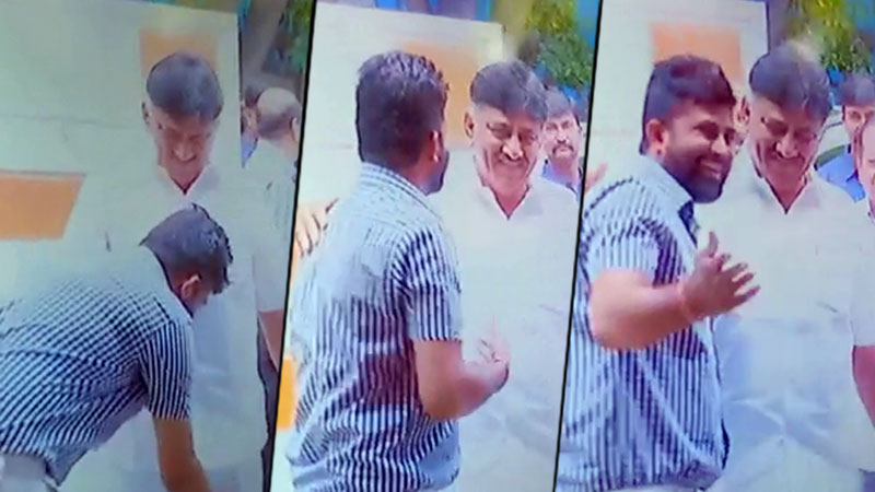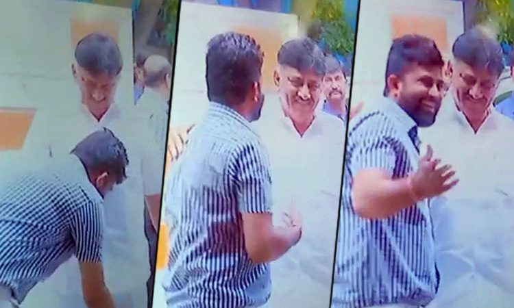 ಬೆಂಗಳೂರು: ಮಾಜಿ ಮುಖ್ಯಮಂತ್ರಿ ಎಸ್.ಎಂ.ಕೃಷ್ಣ ಹುಟ್ಟು ಹಬ್ಬದ ಹಿನ್ನೆಲೆಯಲ್ಲಿ ಸಚಿವ ಡಿ.ಕೆ.ಶಿವಕುಮಾರ್ ಸದಾಶಿವನಗರದಲ್ಲಿರುವ ಕೃಷ್ಣ ನಿವಾಸಕ್ಕೆ ತೆರಳಿ ಶುಭಾಶಯ ತಿಳಿಸಿದ್ರು. ಎಸ್.ಎಂ.ಕೃಷ್ಣ ನಿವಾಸಕ್ಕೆ ಡಿ.ಕೆ.ಎಸ್ ಆಗಮಿಸುತ್ತಿದ್ದಂತೆ ಎದುರಾದ ಸಂಸದ ಪ್ರತಾಪ್ ಸಿಂಹ, ಡಿ.ಕೆ.ಶಿವಕುಮಾರ್ ಕಾಲಿಗೆ ನಮಸ್ಕರಿಸಿದ್ರು. ಪ್ರತಿಯಾಗಿ ಮುಗುಳ್ನಗೆ ಚೆಲ್ಲಿದ ಡಿ.ಕೆ.ಶಿವಕುಮಾರ್, ನಿವಾಸದೊಳಕ್ಕೆ ತೆರಳಿದರು.