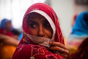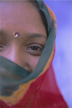 Portrait of a local woman in the 'Blue City', Jodhpur, Rajasthan State, India, Asia