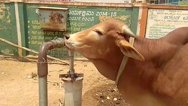 ಕೊಪ್ಪಳ: ಜಿಲ್ಲೆಯಲ್ಲಿ ಹನಿ ಹನಿ ನೀರಿಗೂ ಹಾಹಾಕಾರ ಉಂಟಾಗಿದೆ. ಬಿಸಿಲಿನ ಧಗೆಗೆ ಜನರು ತತ್ತರಿಸಿ ಹೋಗಿದ್ದಾರೆ. ಬೇಸಿಗೆಯಲ್ಲಿ ಪ್ರಾಣಿ ಪಕ್ಷಿಗಳ ಸ್ಥಿತಿ ಮತ್ತಷ್ಟು ಬಿಗಡಾಯಿಸಿದೆ. ಜಾನುವಾರಗಳ ದಾಹ ಹೇಳತೀರದು. ಜಿಲ್ಲೆಯಾದ್ಯಂತ ನೀರಿಲ್ಲದೇ ಜನ, ಜಾನುವಾರುಗಳು ಪರಿತಪಿಸುವಂತಾಗಿದೆ. ನೀರಿಗಾಗಿ ಬಿಡಾಡಿ ದನಗಳು ಪರದಾಡುವ ಸ್ಥಿತಿ ಉಂಟಾಗಿದೆ. ಜಿಲ್ಲಾ ಕೇಂದ್ರ ಕೊಪ್ಪಳದ ತಹಶೀಲ್ದಾರ್ ಕಚೇರಿ ಬಳಿ ಹಸುವೊಂದು ಪೈಪ್ನಿಂದ ಬೀಳುತ್ತಿರುವ ಹನಿ ನೀರಿಗಾಗಿ ನಾಲಿಗೆ ಚಾಚಿ ದಾಹ ತೀರಿಸಿಕೊಳ್ಳುತ್ತಿರುವ ದೃಶ್ಯ ಕಂಡು ಬಂದಿದೆ.