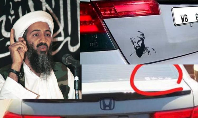 ವಾಹನಗಳ ಮೇಲೆ ಇಷ್ಟದ ದೇವರು ಅಥವಾ ಪ್ರೀತಿ ಪಾತ್ರರ ಹೆಸರು ಅಥವಾ ಚಿತ್ರಗಳನ್ನು ಹಾಕಿಕೊಳ್ಳುವುದು ಕಾಮನ್. ಆದ್ರೆ ಇಲ್ಲೊಬ್ಬ ಕಾರು ಮಾಲೀಕ ಮಾತ್ರ ಉಗ್ರ ಒಸಮಾ ಬಿನ್ ಲಾಡೆನ್ ಸ್ಟಿಕರ್ ಹಾಕಿಕೊಂಡು ಪೊಲೀಸರ ಅತಿಥಿಯಾಗಿದ್ದಾನೆ.