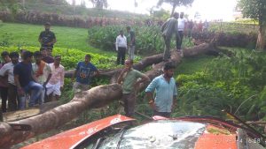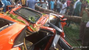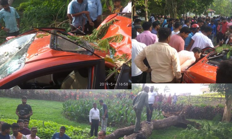 ಉಜಿರೆ : ಚಲಿಸುತ್ತಿದ್ದ ಕಾರಿನ ಮೇಲೆ ಭಾರಿ ಗಾತ್ರದ ಮರ ಬಿದ್ದು ಕಾರ್ನಲ್ಲಿದ್ದ ಇಬ್ಬರು ಸ್ಧಳದಲ್ಲೆ ಸಾವನ್ನಾಪ್ಪಿದ ಘಟನೆ ದ.ಕ ಜಿಲ್ಲೆ, ಬೆಳ್ತಂಗಡಿ ತಾಲೂಕಿನ ಉಜಿರೆಯ ಸಿದ್ಧವನದ ಬಳಿ ನಡೆದಿದೆ. ಮರ ಉರುಳಿದ ಪರಿಣಾಮ ಕಾರು ಸಂಪೂರ್ಣ ನಜ್ಜುಗುಜ್ಜುಗಿದೆ. ಧರ್ಮಸ್ಥಳದಿಂದ ಉಜಿರೆ ಕಡೆಗೆ ಪ್ರಯಾಣಿಸುತ್ತಿದ್ದ ಸಂದರ್ಭದಲ್ಲಿ ಚಲಿಸುತ್ತಿದ್ದ ಕಾರಿನ ಮೇಲೆ ಏಕಾಏಕಿ ಮರ ಉರುಳಿ ಬಿದ್ದಿದ್ದು ಎದುರಿನ ಸೀಟ್ನಲ್ಲಿ ಕುಳಿತಿದ್ದ ವಿಘ್ನೇಶ್ ಮತ್ತು ಕ್ಷಿತಿಜ್ ಜೈನ್ ಸ್ಧಳದಲ್ಲೆ ಸಾವನ್ನಾಪ್ಪಿದ್ದಾರೆ. ಇನ್ನು ಹಿಂಬದಿಯಲ್ಲಿ ಕುಳಿತಿದ್ದ ಸುಶಾಂತ್ ಮತ್ತು ಹರ್ಷಿತ್ಗೆ ಗಂಭೀರ ಗಾಯವಾಗಿದ್ದು ಮಂಗಳೂರು ಖಾಸಗಿ ಆಸ್ಪತ್ರೆಗೆ ದಾಖಲಿಸಲಾಗಿದೆ.