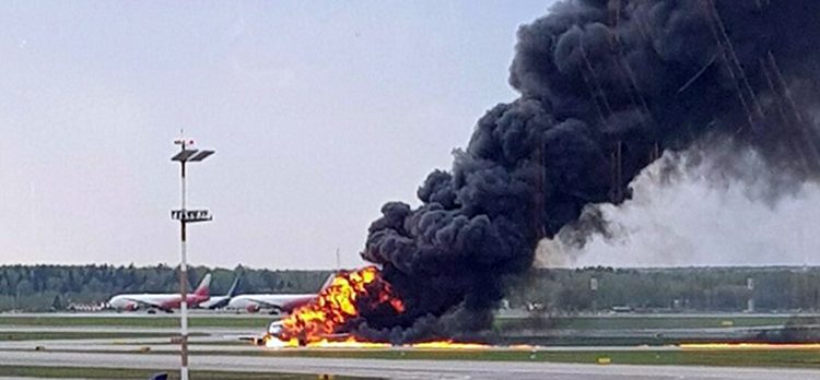 Moscow: In this image provided by Riccardo Dalla Francesca shows smoke rises from a fire on a plane at Moscow's Sheremetyevo airport on Sunday, May 5, 2019. AP/PTI Photo(AP5_5_2019_000275B)